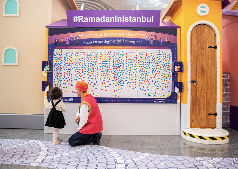 Welcoming millions of guests from around the world every year, iGA Istanbul Airport aims to introduce the culture of Ramadan to the world. The Ramadan Village, which was opened in the airside area of the terminal, was designed to bring the joy of Ramadan to guests, especially children. The characters of the Ramadan Village, dressed in traditional costumes, offer an enjoyable travel experience to the passengers who are waiting for their flights. Families with children can also spend time at the funfair set up on the departures floor, with a carousel, Ferris wheel, gondola and trampoline.