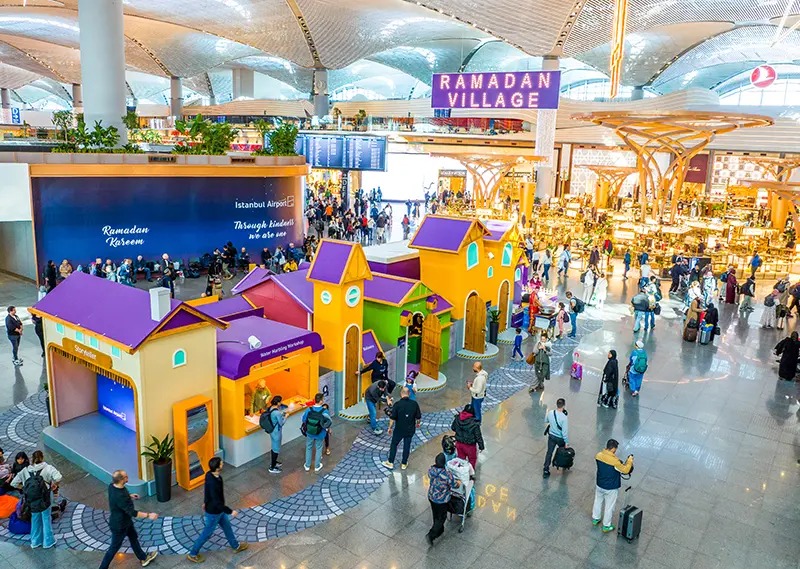 İGA İstanbul Havalimanı’nda Ramazan ayı boyunca İç Hatlar ve Dış Hatlar terminallerinde kurulan “Ramazan Köyü”, yolculara ve ziyaretçilere geleneksel Ramazan atmosferini yaşatacak etkinliklerle hizmet veriyor. Alanlar her gün 10.00–22.00 saatleri arasında ziyaret edilebiliyor.